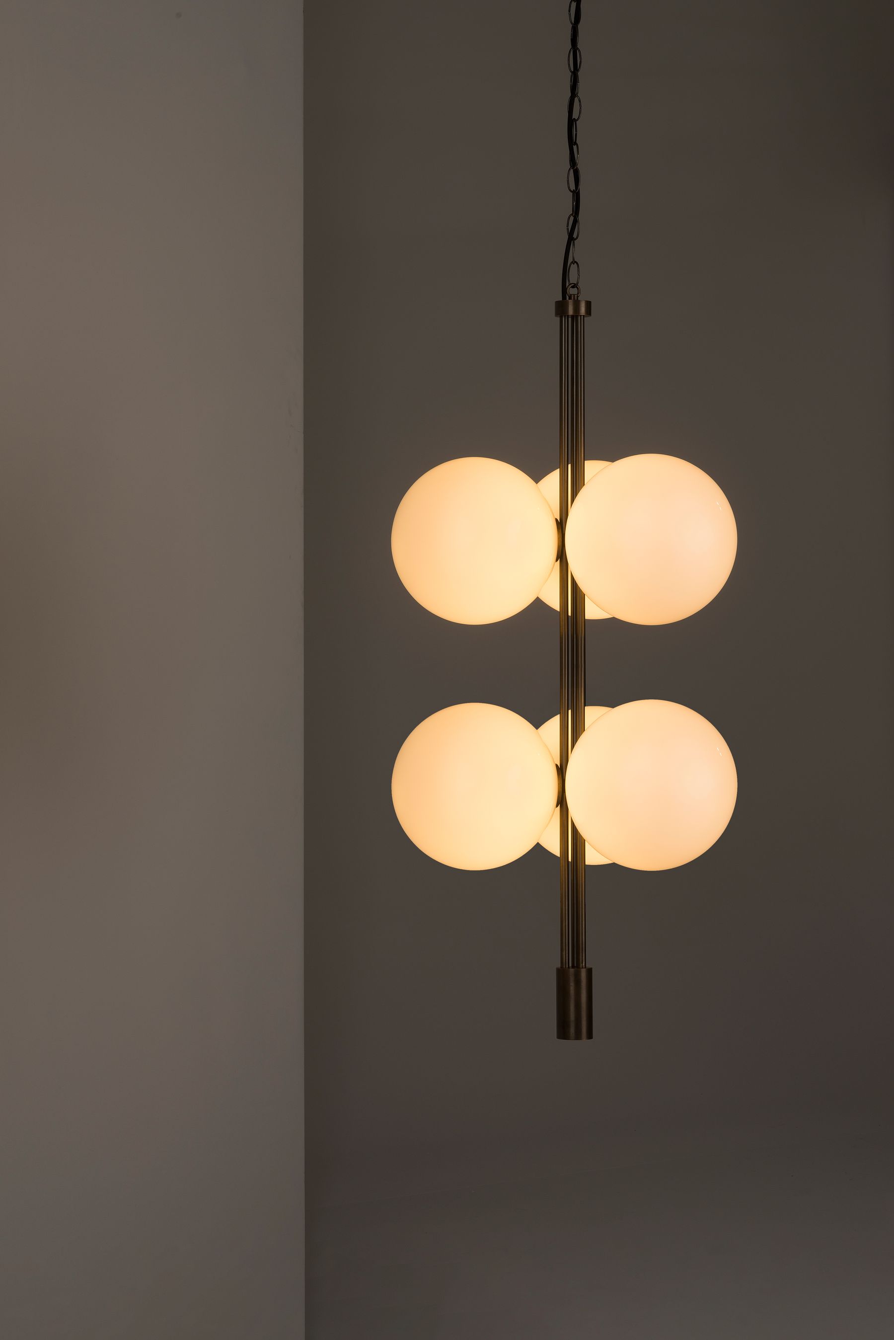 The Trio Collection presents a modern interpretation of traditional aesthetics featuring hand-crafted solid brass components and harmoniously balanced blown glass globes.